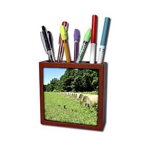 Vendor: Office Products Product Description : Field Trees Hay Rolls Green Tan Tile Pen Holder is measuring 5w x 5h x 2d. Made from high quality solid mahogany wood with satin finish and one 4.25 commercial grade mirror gloss ceramic tile. Looks great on a desk or counter top with a full color custom imaged tile.