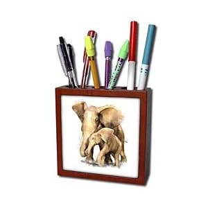 Vendor: Office Products Product Description : Elephant Mother and Child Tile Pen Holder is great on a desk or counter top. Made of high quality solid wood with a satin finish. Image displayed on one inset high gloss 4.25" x 4.25" ceramic tile. Overall size is 5" x 5" x 1 2/3" with 3- 1 1/3" top holes.