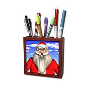 Vendor: Office Products Product Description : Santa Claus and blue skies Tile Pen Holder is measuring 5w x 5h x 2d. Made from high quality solid mahogany wood with satin finish and one 4.25 commercial grade mirror gloss ceramic tile. Looks great on a desk or counter top with a full color custom imaged tile.