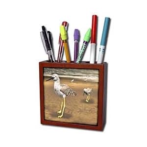Vendor: Office Products Product Description : Lesser Yellowlegs birds on beach Tile Pen Holder is measuring 5w x 5h x 2d. Made from high quality solid mahogany wood with satin finish and one 4.25 commercial grade mirror gloss ceramic tile. Looks great on a desk or counter top with a full color custom imaged tile.