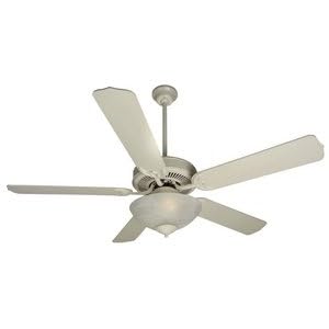 Product Description : K10622 Features: -Ceiling fan.-Contractor style.-Standard, 3 speed reversible motor.-Five blades.-Type 5 blade.-Blade pitch: 12 degree.-RPM (Hi-Med-Low) : 200-120-55.-Airflow efficiency (cubic ft/min/watt): 92.-Universal control adaptable remote (optional).-Motor size: 153mm x 12mm. Includes: -2'' and 4'' Downrods included. Color/Finish: -Fan finish: Antique white.-Blade finish: Antique white. Specifications: -Fan speed: 0.7 amps.-Fan electricity usage: 67 Watts. Dimensions: -Fan dimensions: 10.51'' H x 21.06'' W x 10.04'' D.-Blade length: 52''.-Blade dimensions: 0.571'' H x 21.06'' W x 11.02'' D. Warranty: -Manufacturer provides 30 year limited warranty.