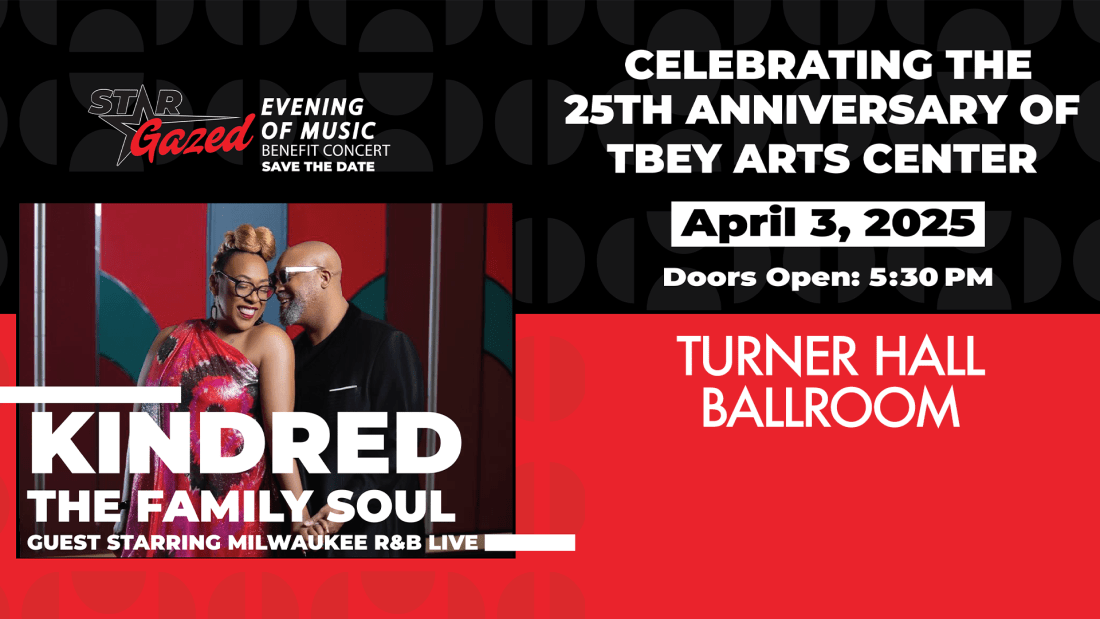 Join TBEY Arts Center for an unforgettable night of soulful melodies and incredible performances featuring national recording artist, Kindred the Family Soul and talented local artists brought to us by Milwaukee R&B Live. The StarGazed Benefit Concert, TBEY Arts Center's annual signature fundraising event, celebrates the arts while raising critical funds to support Milwaukee's youth.